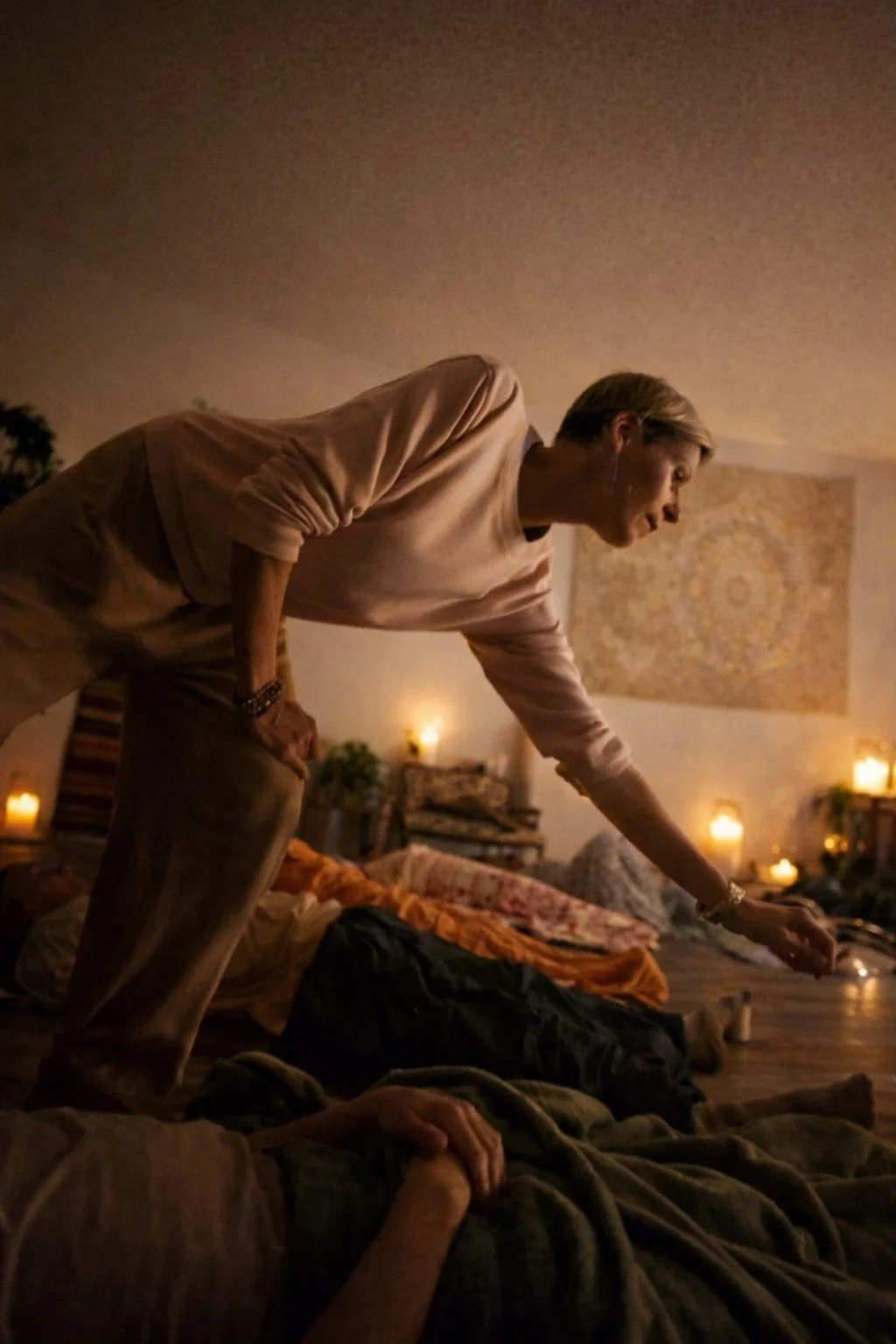 Participants are asked to bring personal comfort items such as mats, blankets, pillows, and eye masks. Jen provides music, incense, cards, tea, and other supportive elements to help create a warm, grounded atmosphere.